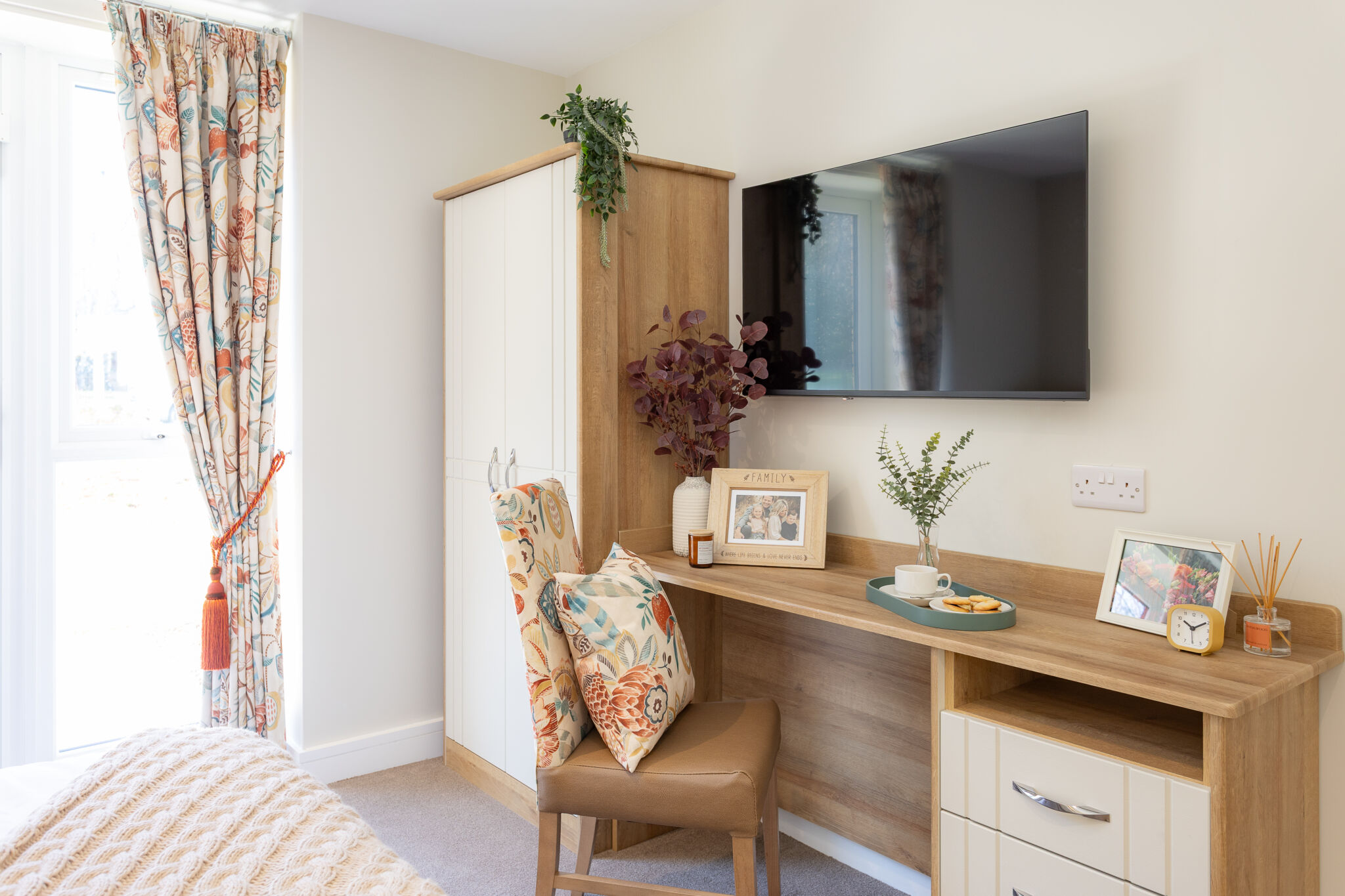 Our bright, airy bedrooms feel like home with a modern twist, and residents are encouraged to personalise their space with treasured photos and keepsakes.